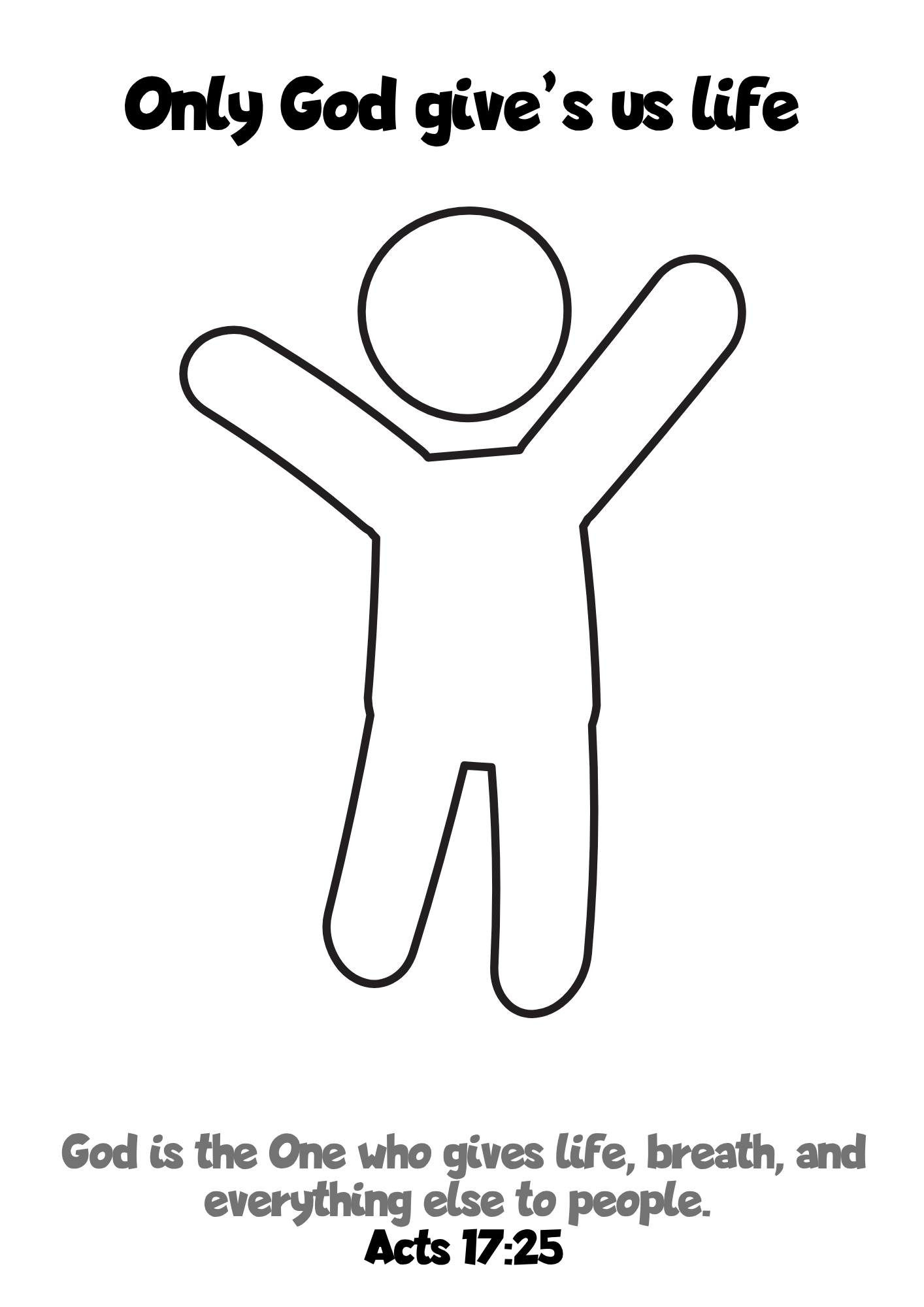 Lay out the roll of paper or put onto the floor the a4 stuck together to make a large sheet. Choose someone to lie down and someone to draw around them. Once you have a person outline Write some of the things you are thankful to God for that they can do because God has given them life/breath etc.
